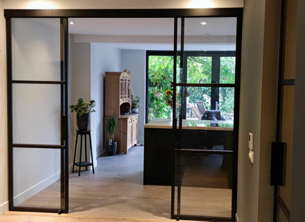 Een enkele stalen deur met glas is dé perfecte keuze wanneer u op zoek bent naar een binnendeur die veel licht doorlaat. Bij een enkele deur kunt u zowel kiezen voor een taats scharnier deur als een schuifdeur.